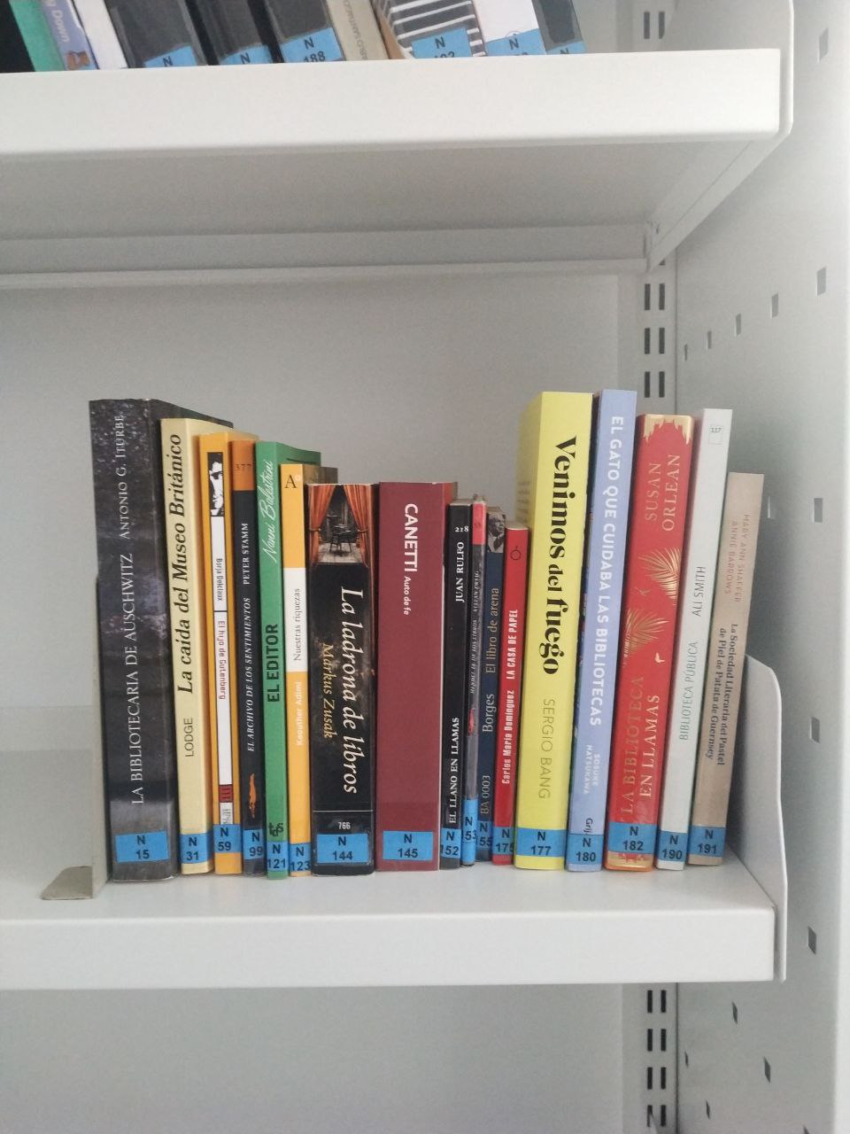 Biblioteca. Cada persona sacó un libro, principalmente de la sección de narrativa de la hemeroteca,